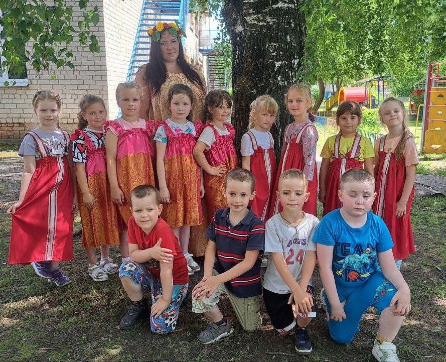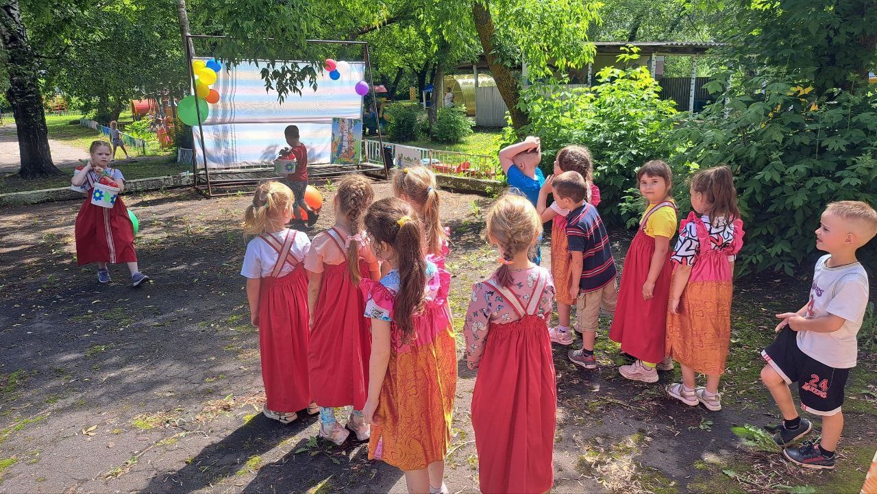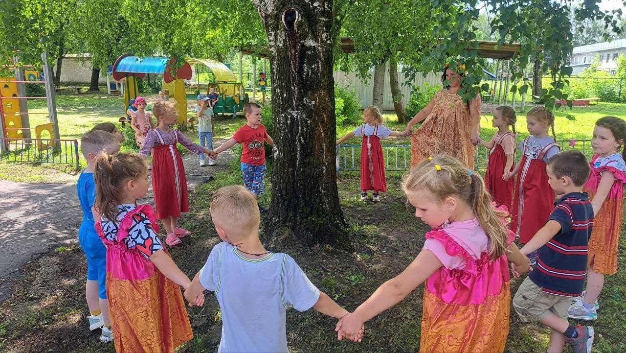 Дети водили вокруг неё хороводы, танцевали, участвовали в эстафетах, играли в русские народные игры а также отгадывали загадки.